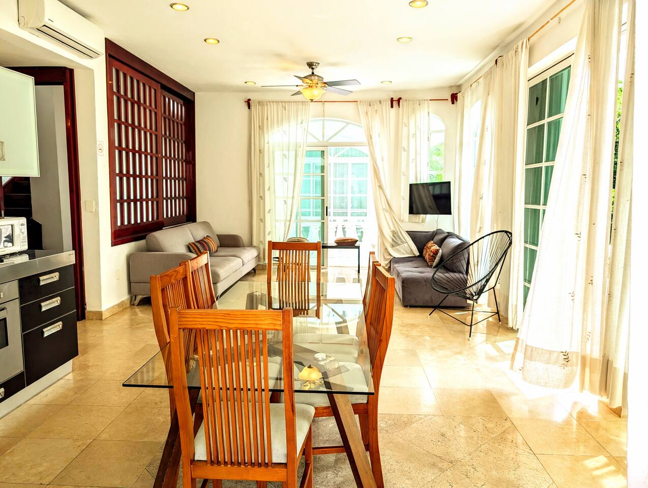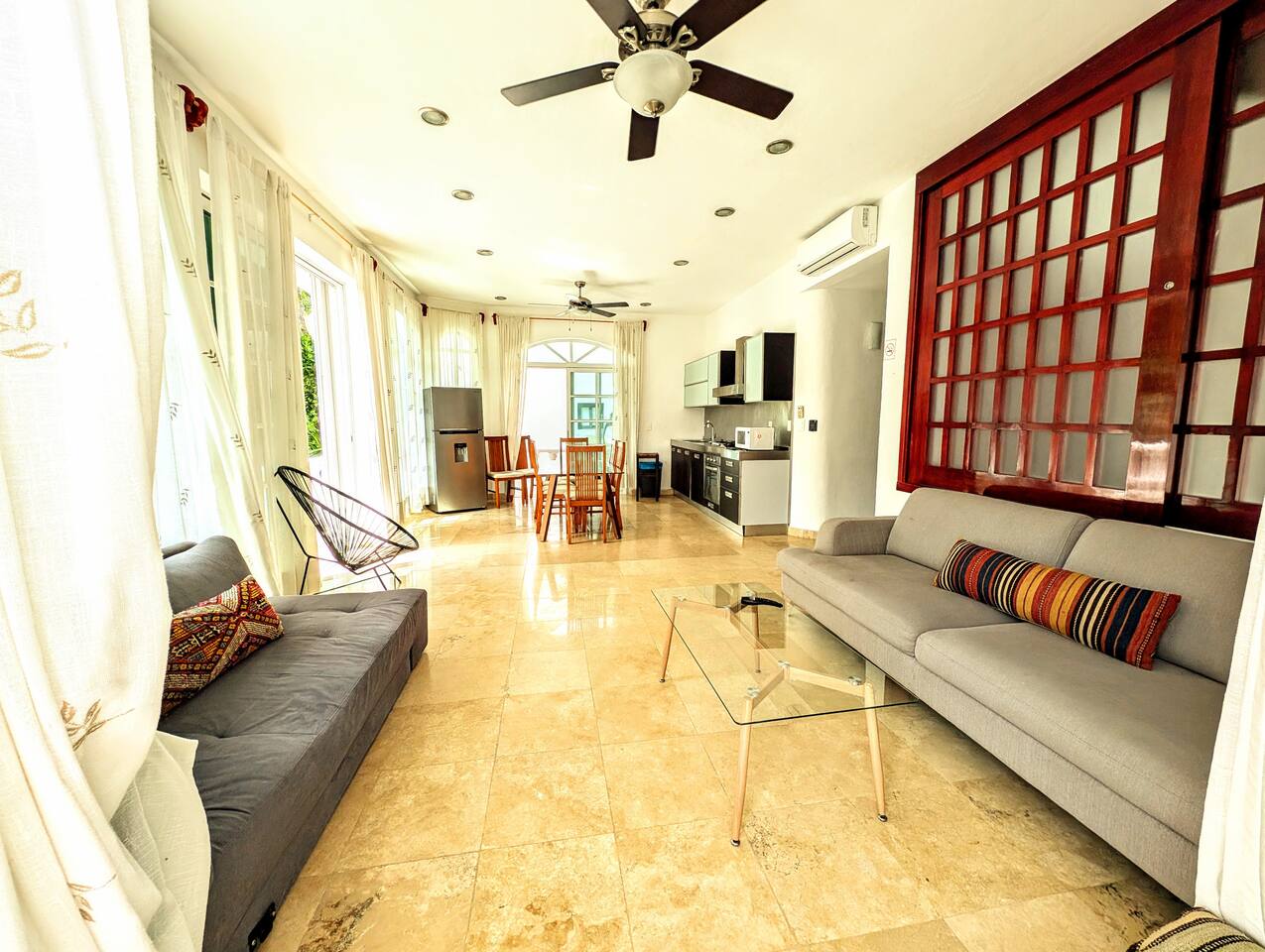 Welcome to Los Castillos, your spacious tropical retreat in the heart of Playa del Carmen! This unique villa is perfect for large families or groups of up to 16 guests, offering an incredible blend of shared spaces and private living. Please note: This listing includes floors 1 and 2 of a 3-story building. The rooftop terrace and plunge pool are shared between floors. For exclusive use of the entire building including the penthouse, see our Castillo 2 Complete listing. Your rental includes the first and second floors of a grand three-story home. The open-air architecture invites the warm tropical breeze inside, creating a seamless indoor-outdoor experience. The villa is thoughtfully designed with two separate floors for your group, each featuring its own kitchen and living area, providing ample room for everyone to relax and unwind. Step directly from the ground-floor living room into the sparkling front yard pool for a refreshing dip anytime. Head to the rooftop terrace to soak up the sun, enjoy partial ocean views, and cool off in the shared plunge pool. We provide the essentials for your stay: • Blazing-fast 1000 Mbps Wi-Fi • Bath towels, beach towels, and hand towels • Shampoo, hand soap, and dish soap • An outdoor shower to rinse off after a day at the beach